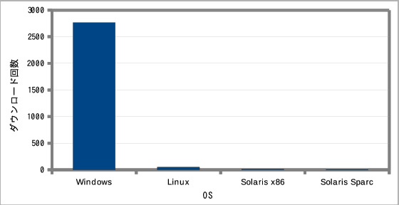 ただ、上図を見ると Linux をご利用のユーザがそれなりにいらっしゃることが わかります。 Solaris に関しては、最近のバージョンでは StarSuite がOSに始 めから含まれているため、ほとんどダウンロードされていない状況です。