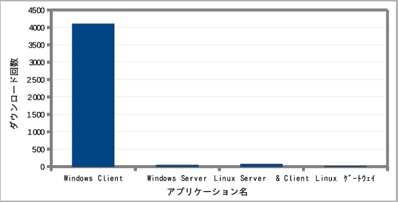 ところで、両ソフトウェアは、一つのアプリケーションでは無く、OSや用途により複 数のアプリケーションで構成されています。 そこで、その種類によるダウンロード回数の状況を示します。